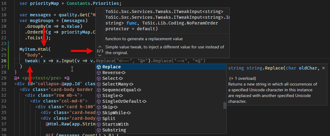 The new coding style makes away with dynamic code, and together with new VS Code features, this allows 2sxc to provide IntelliSense while developing.