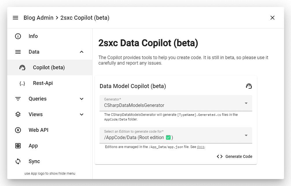 2sxc 17 introduces a new assitant which we'll call Copilot for now.
